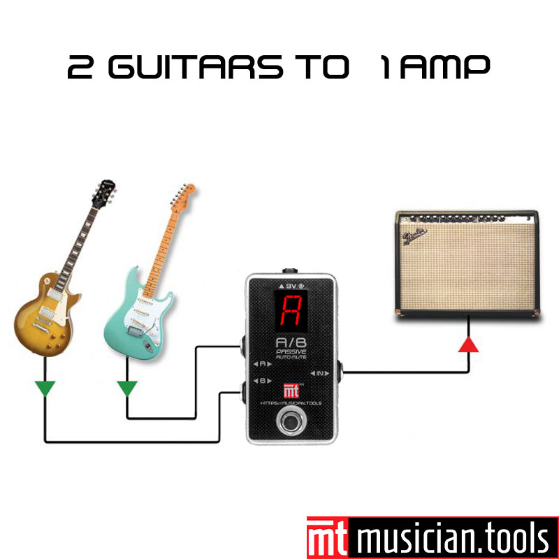 Connect 1 instrument to 2 different amps or connect 2 instruments to 1 amp for easy selection.
